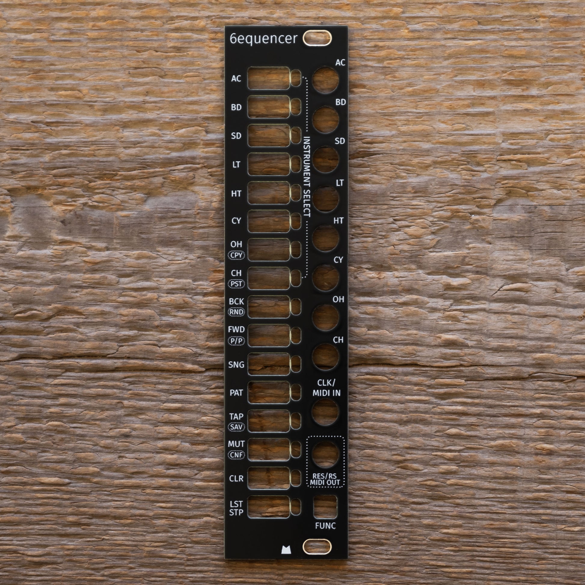 Black replacement panel for Tubbutec 6equencer 3U eurorack module.