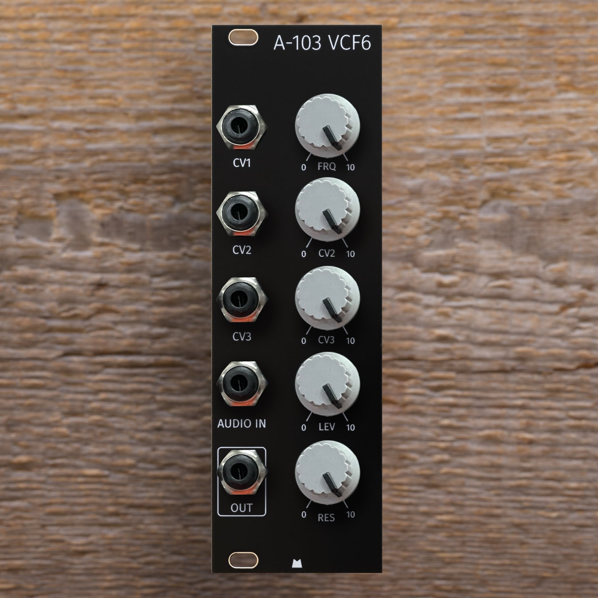 Black replacement panel for Doepfer A-103 VCF6 eurorack module.