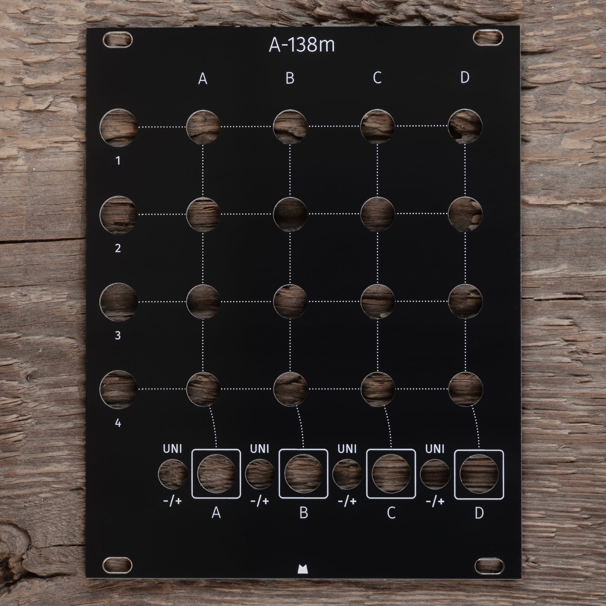 Black replacement panel for Doepfer A-138m 4x4 Matrix Mixer eurorack module.