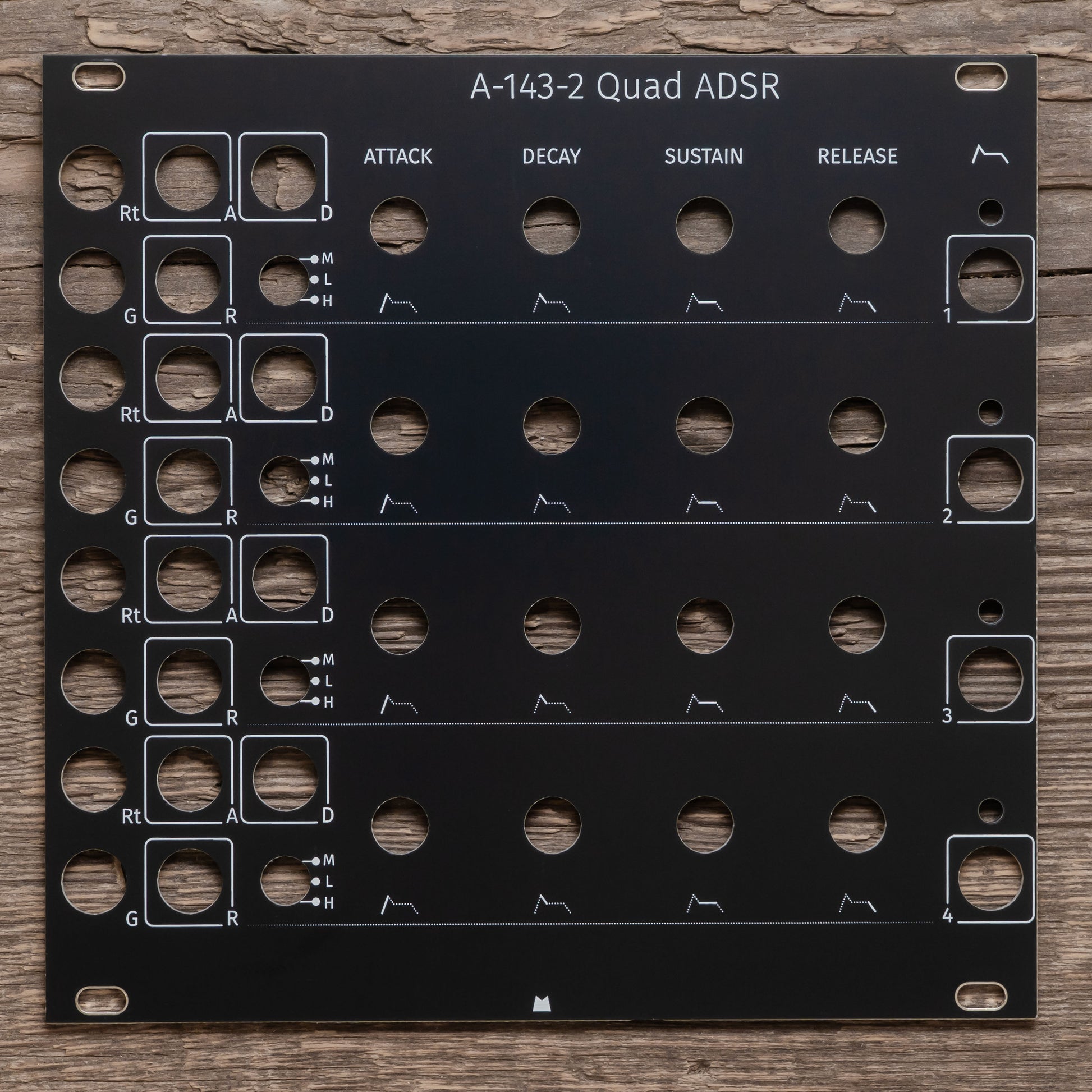 Black replacement panel for Doepfer A-143-2 Quad ADSR eurorack module.