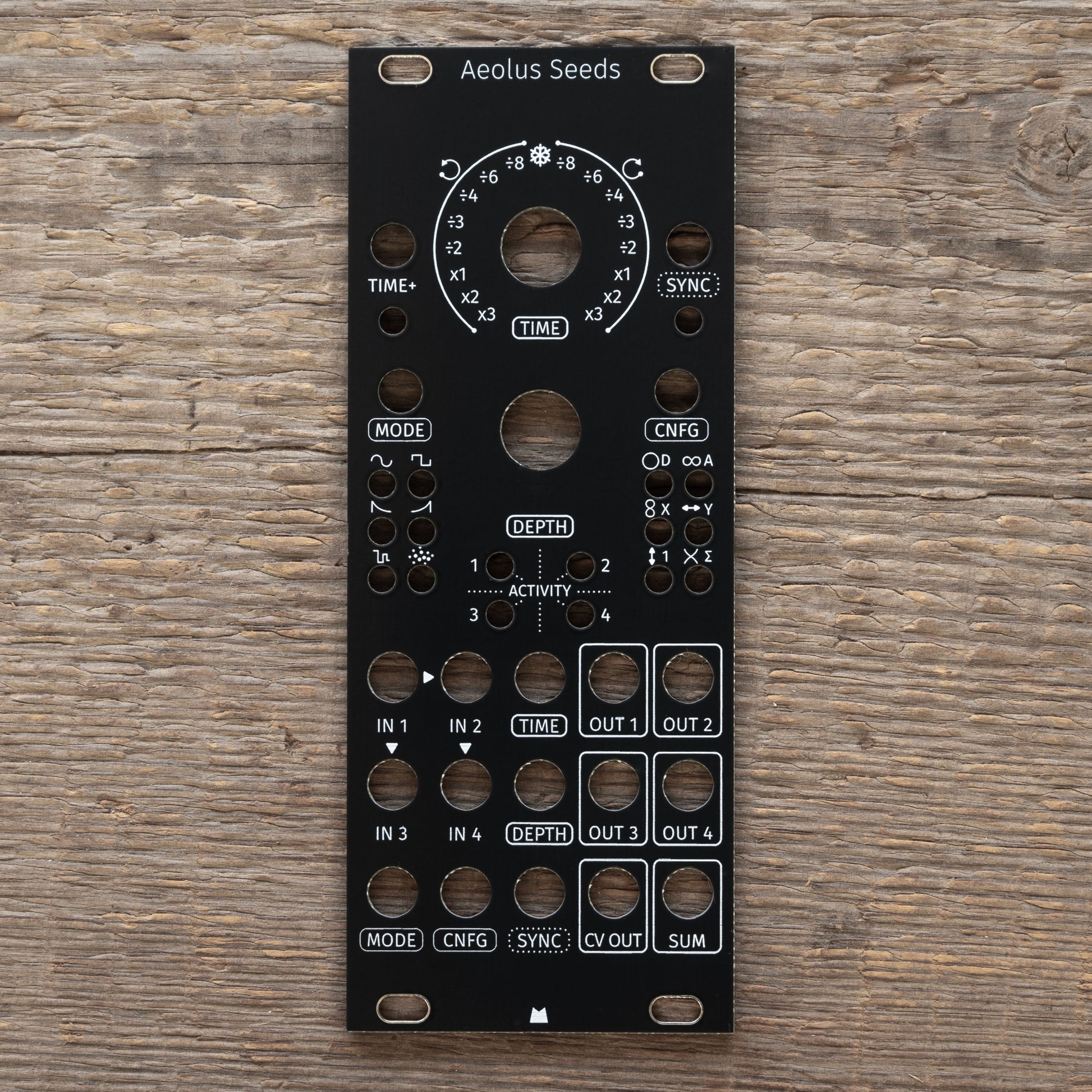 Black replacement panel for Shakmat Aeolus Seeds eurorack module.