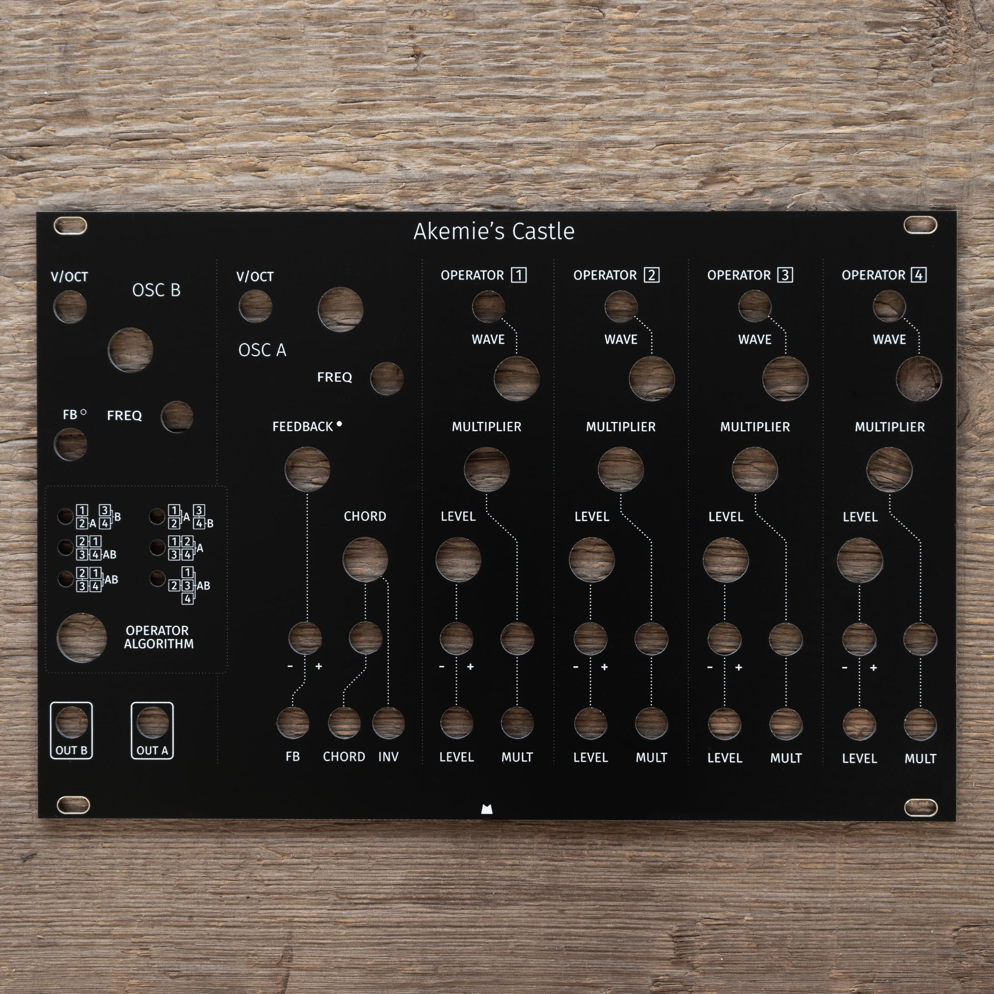 Black replacement panel for ALM Busy Circuits Akemies Castle eurorack module.