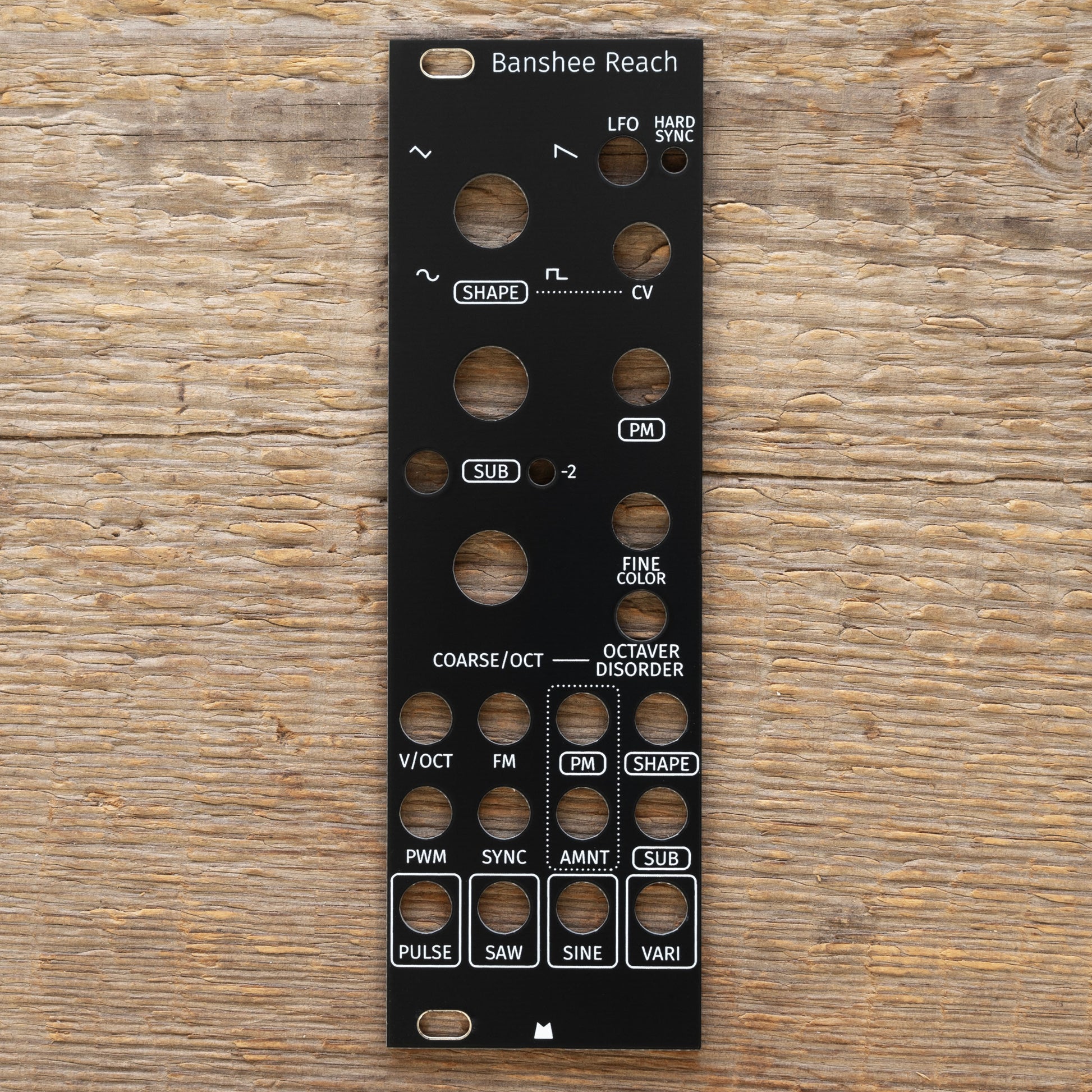 Black replacement panel for Shakmat Banshee Reach eurorack module.