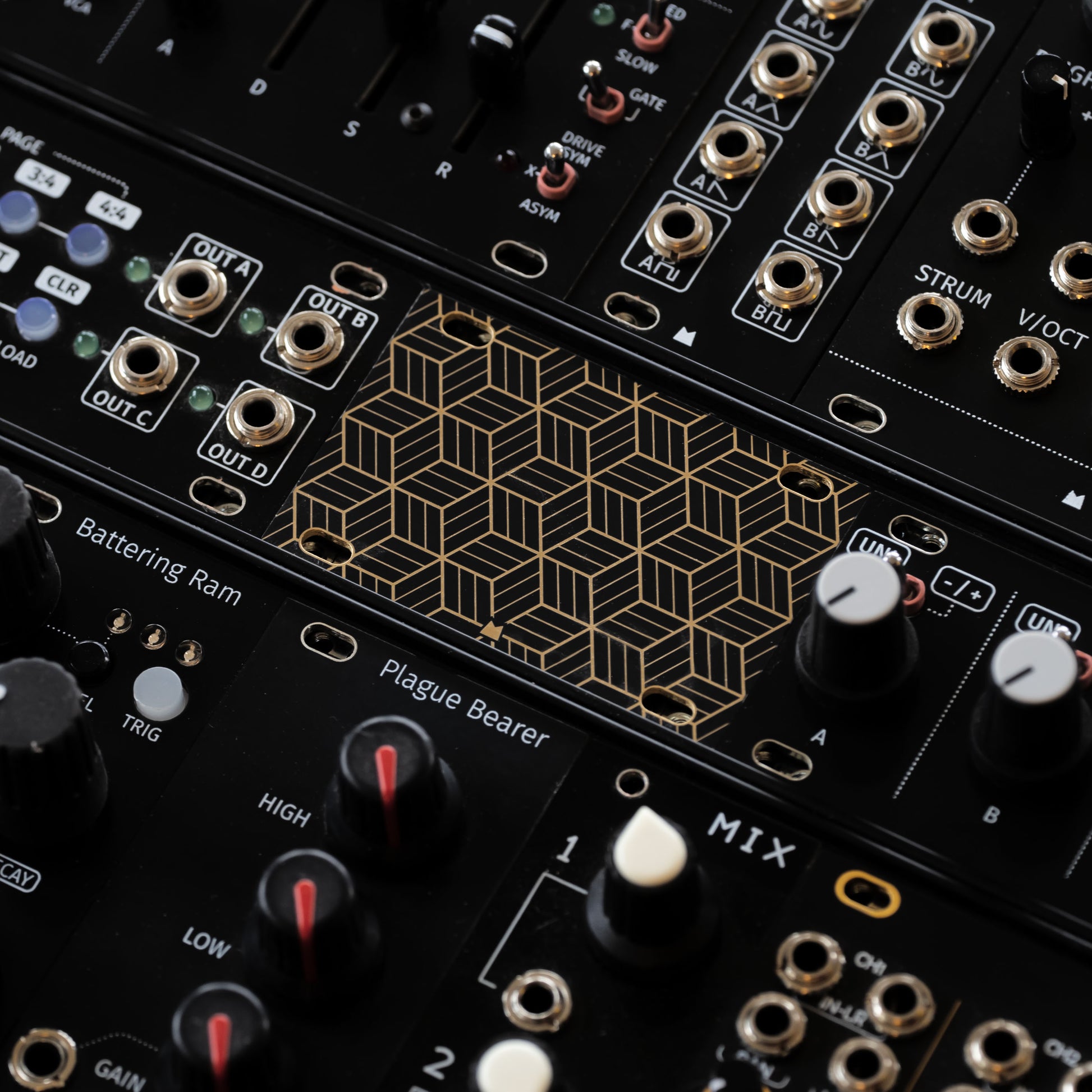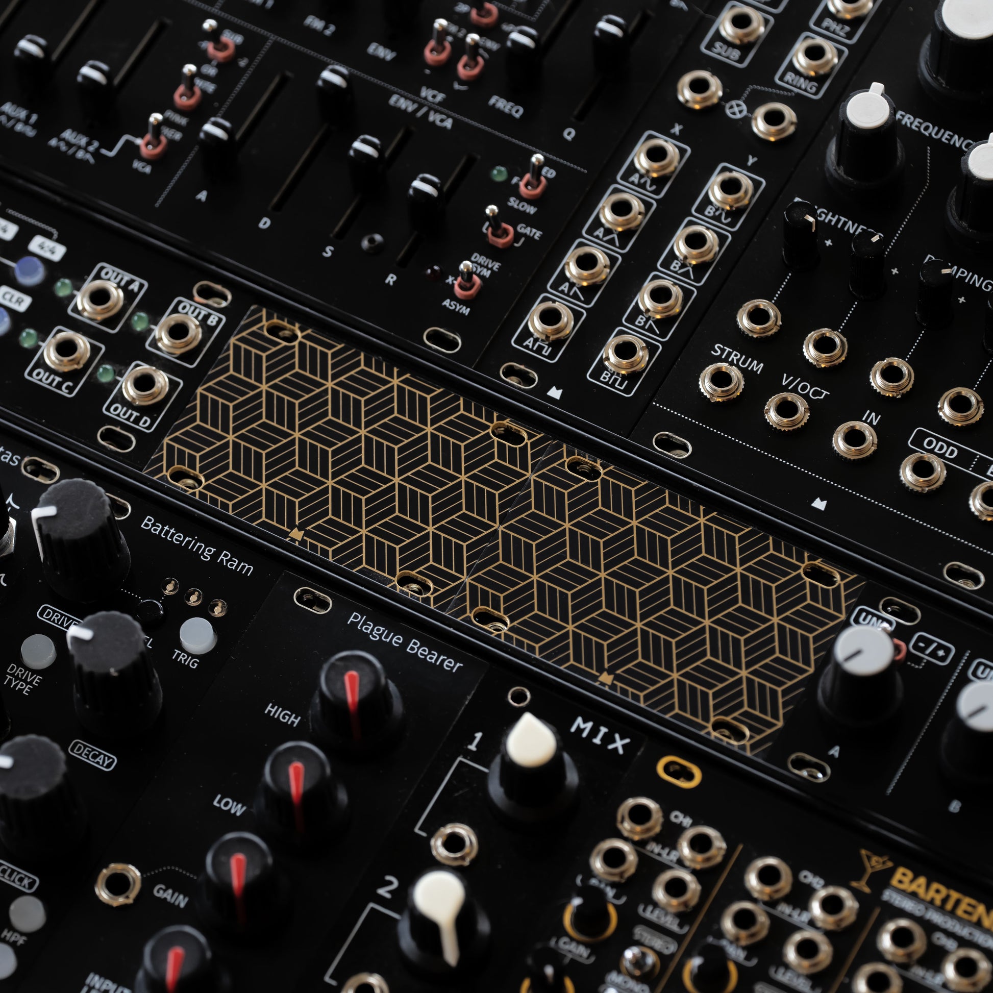 Ornamental 12hp blank in Black & Gold for intellijel 1U eurorack format.