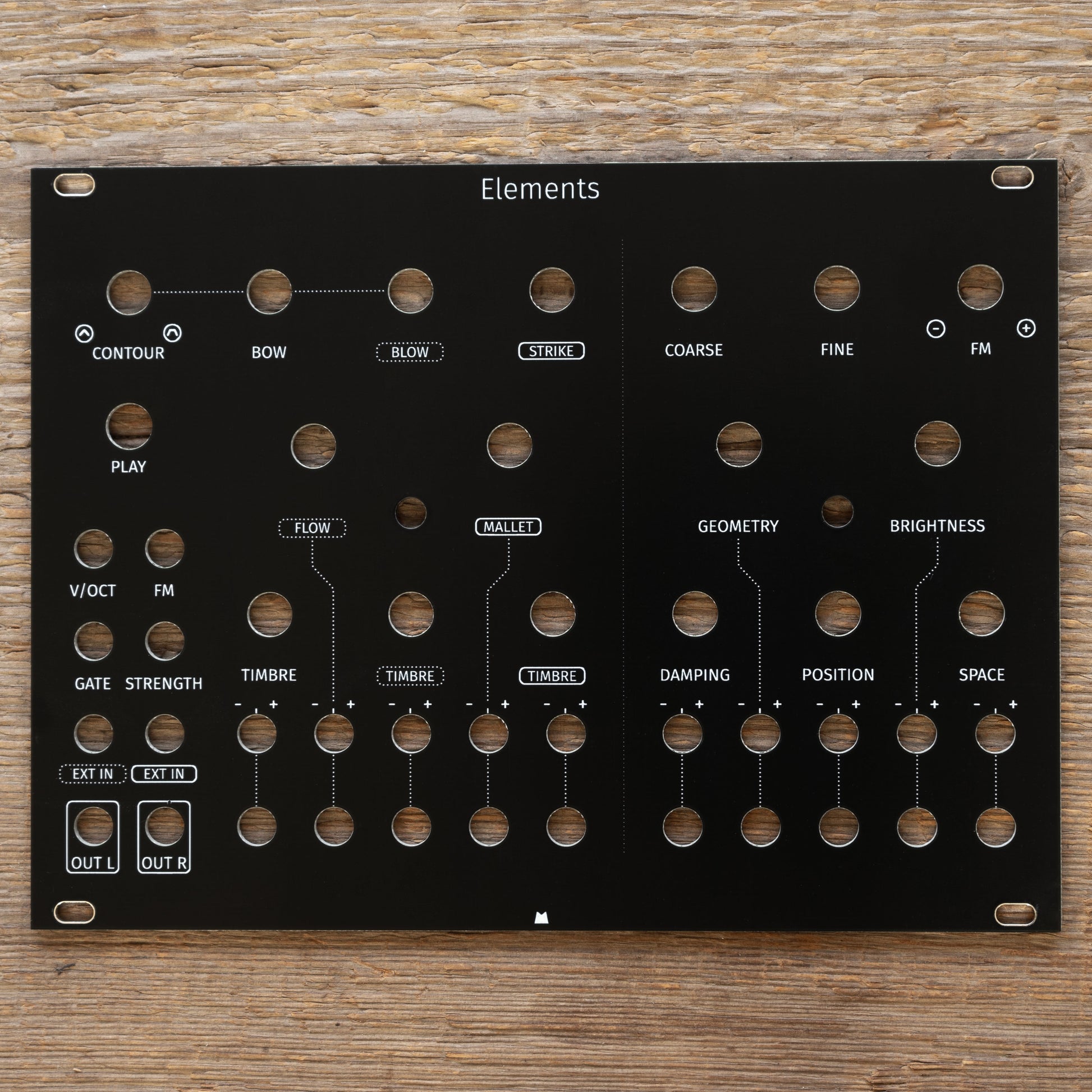 Black replacement panel for Mutable Instruments Elements eurorack module.