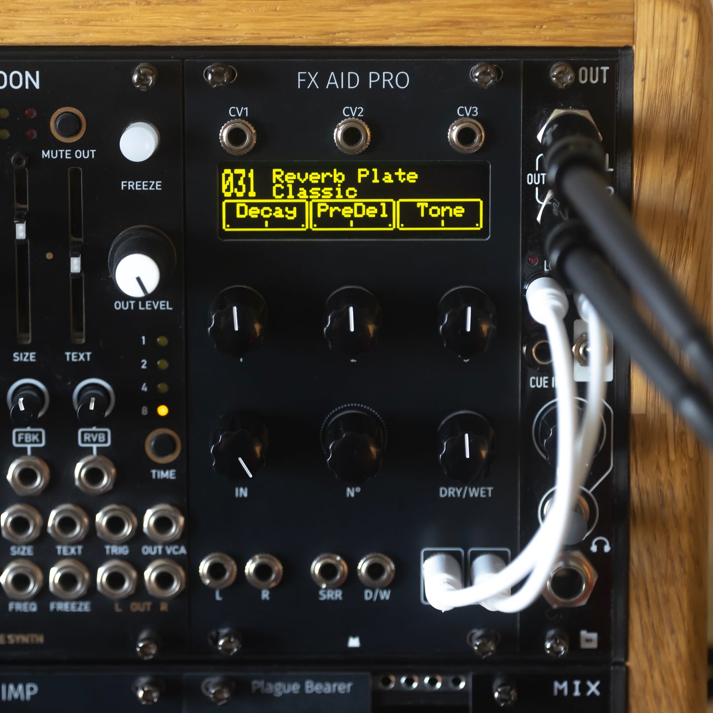 Black replacement panel for Happy Nerding FX Aid Pro eurorack module.