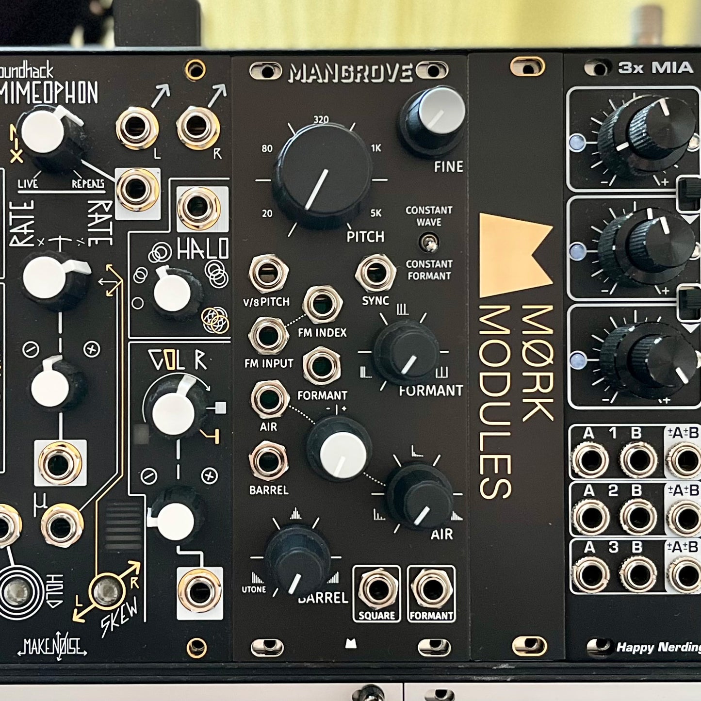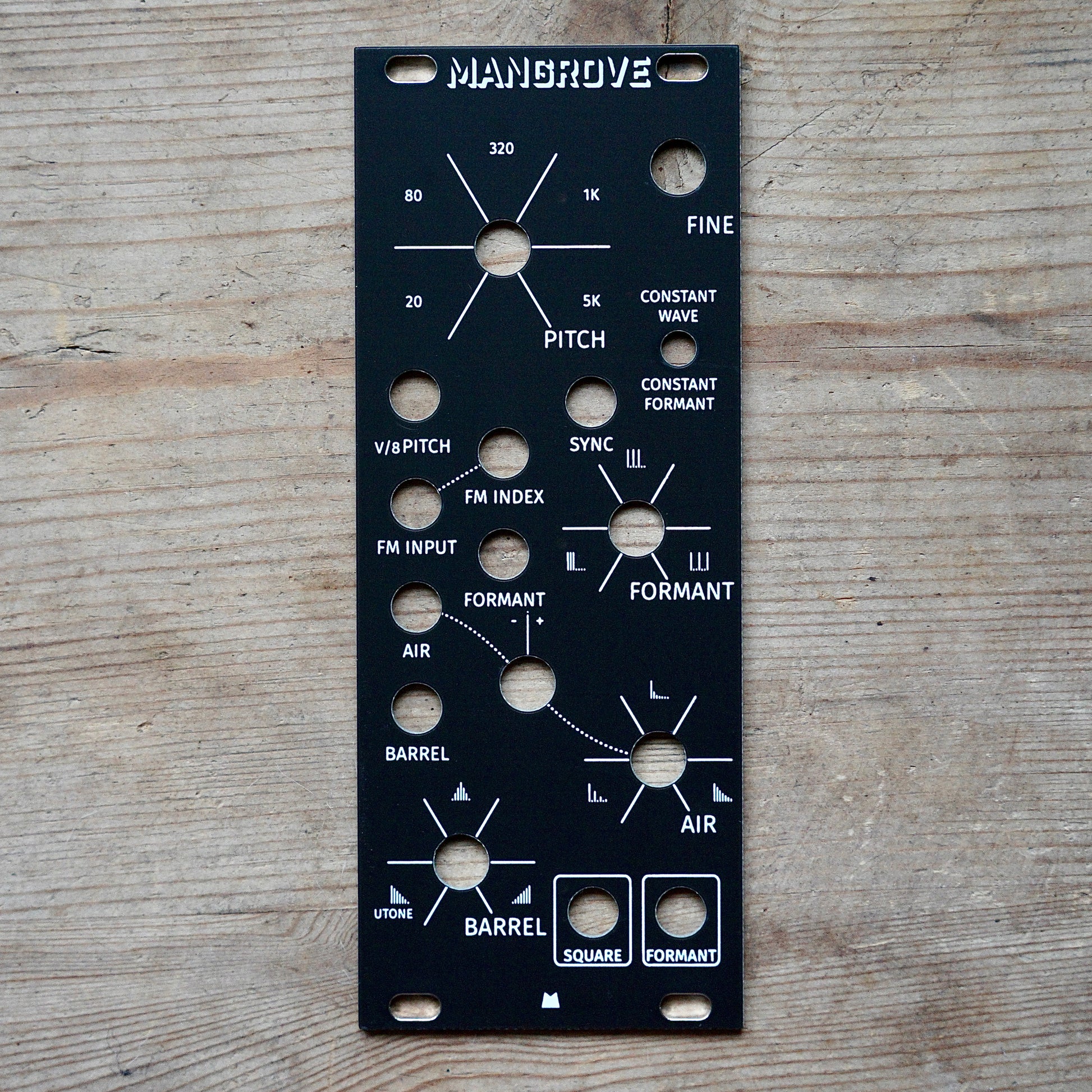 Black replacement panel for Mannequins Mangrove eurorack module.