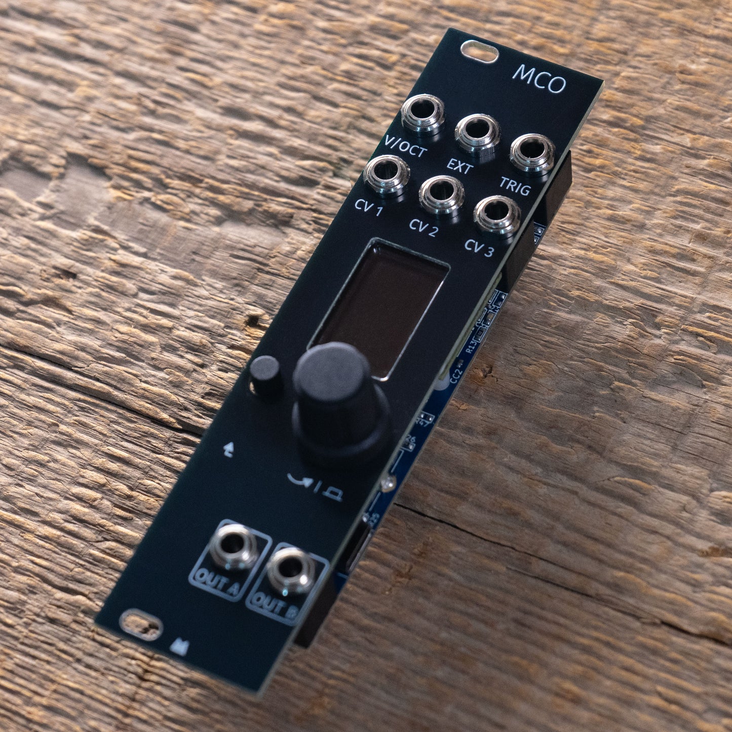 Black replacement panel for ALM Busy Circuits MCO mk2 eurorack module.