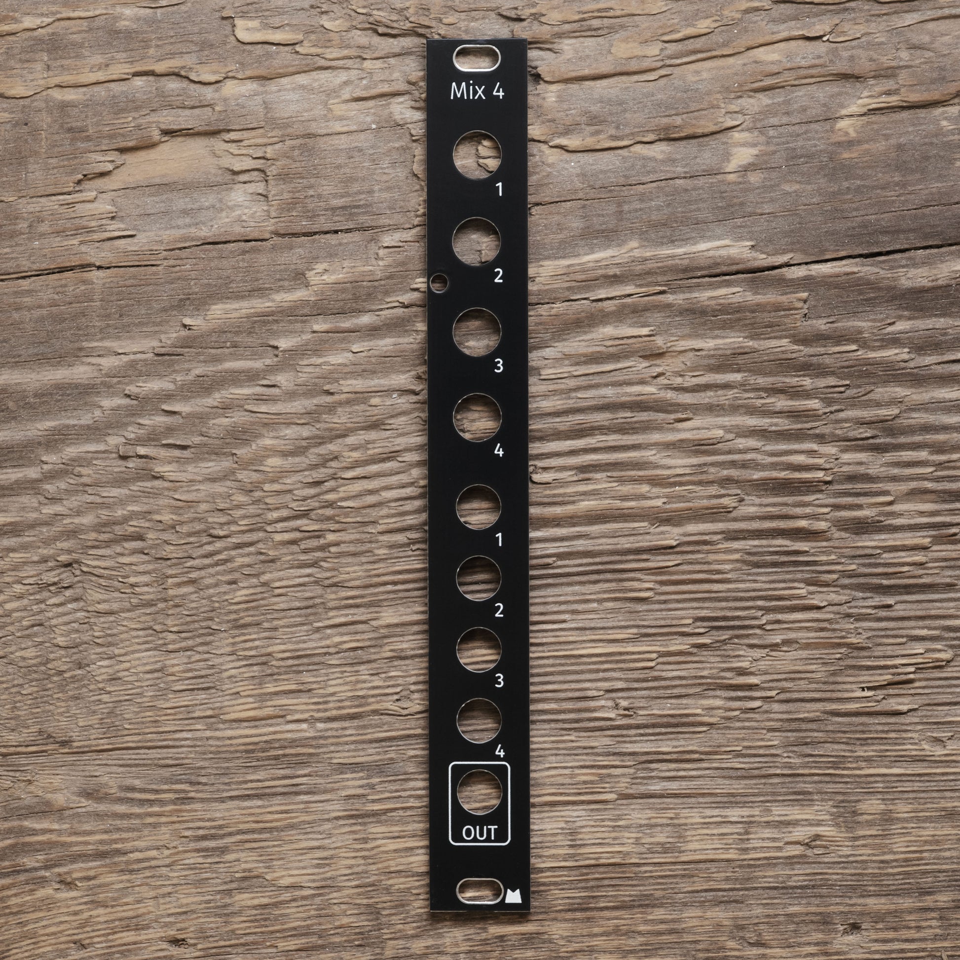 Black replacement panel for Malekko Heavy Industry Mix 4 eurorack module.