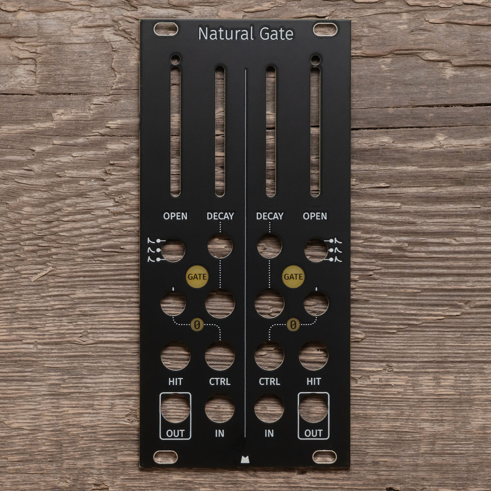 Black replacement panel for Rabid Elephant Natural Gate eurorack module.