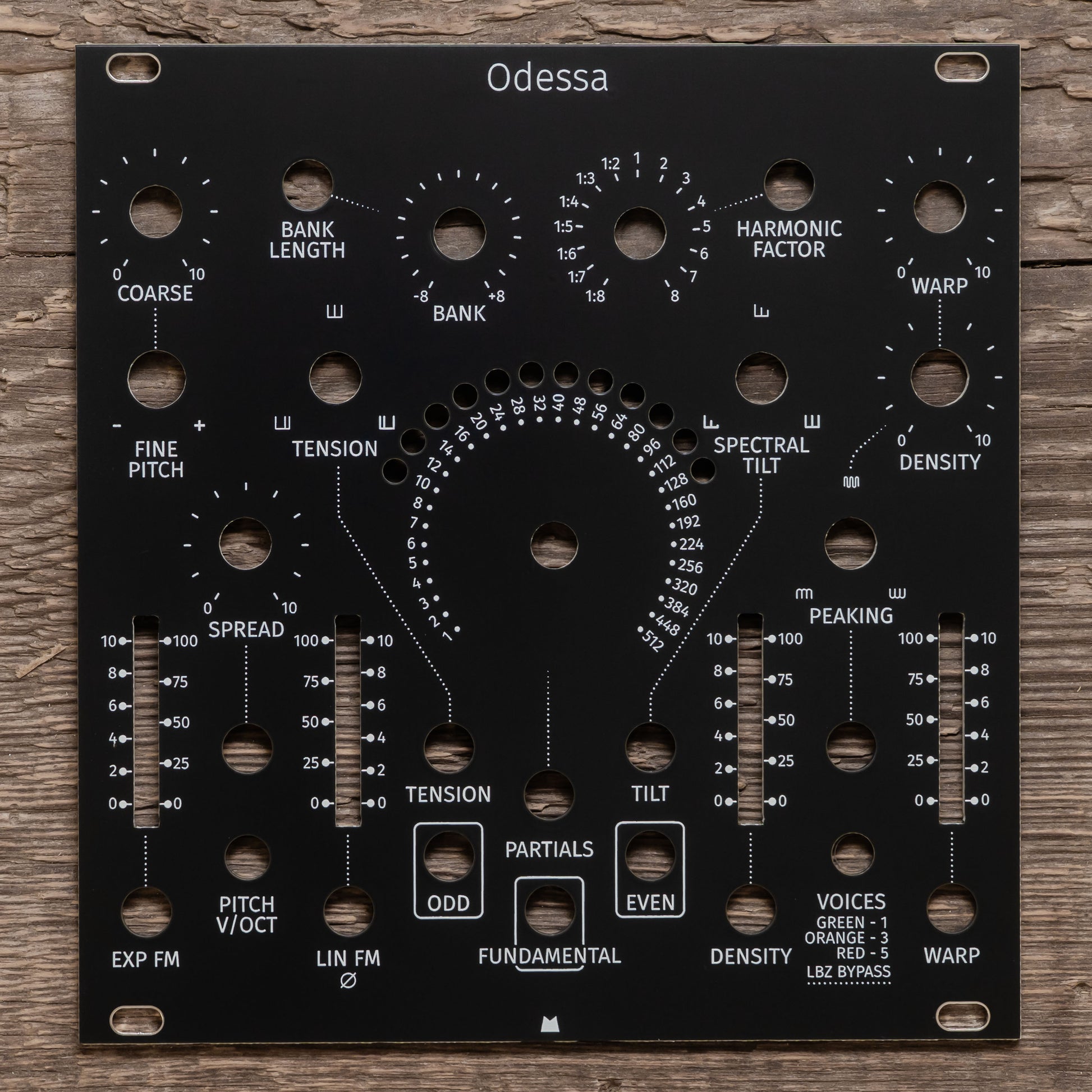 Black replacement panel for XAOC Devices Odessa eurorack module.