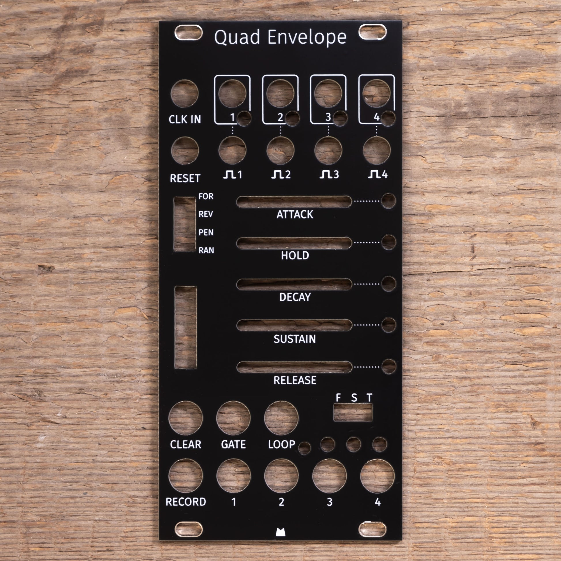 Black replacement panel for Malekko Heavy Industry Quad Envelope eurorack module.