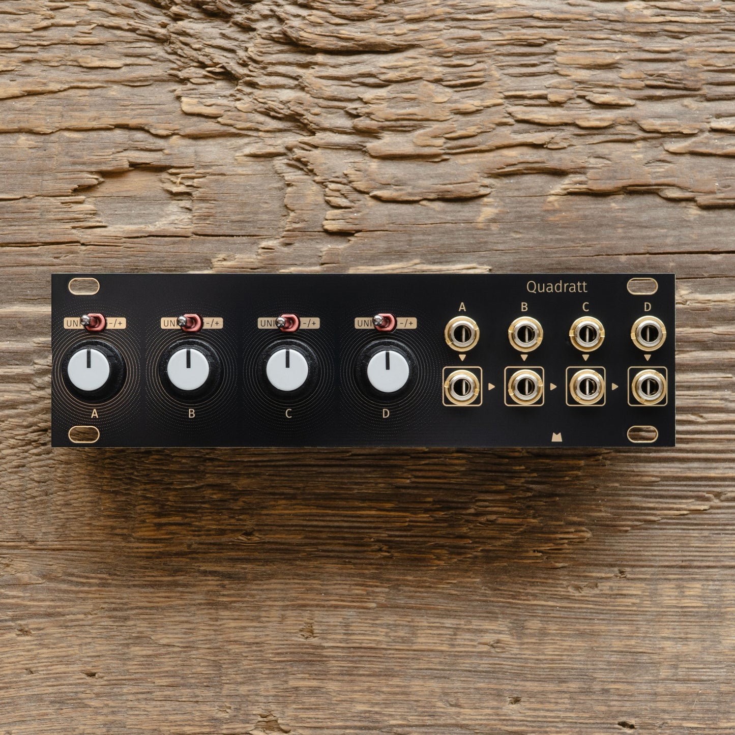 Black & Gold replacement panel for Intellijel Quadratt 1U eurorack module.