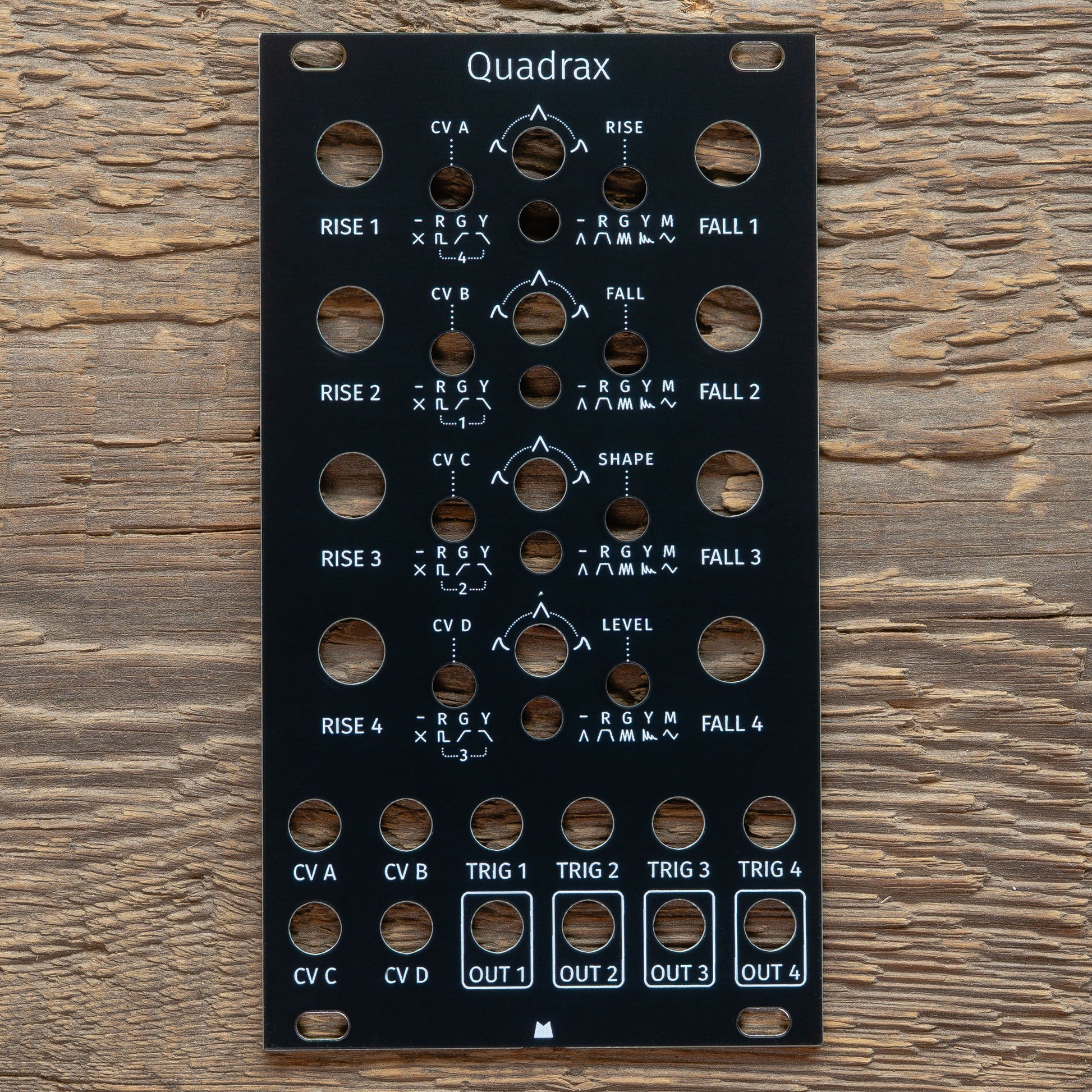 Black replacement panel for Intellijel Quadrax eurorack module.