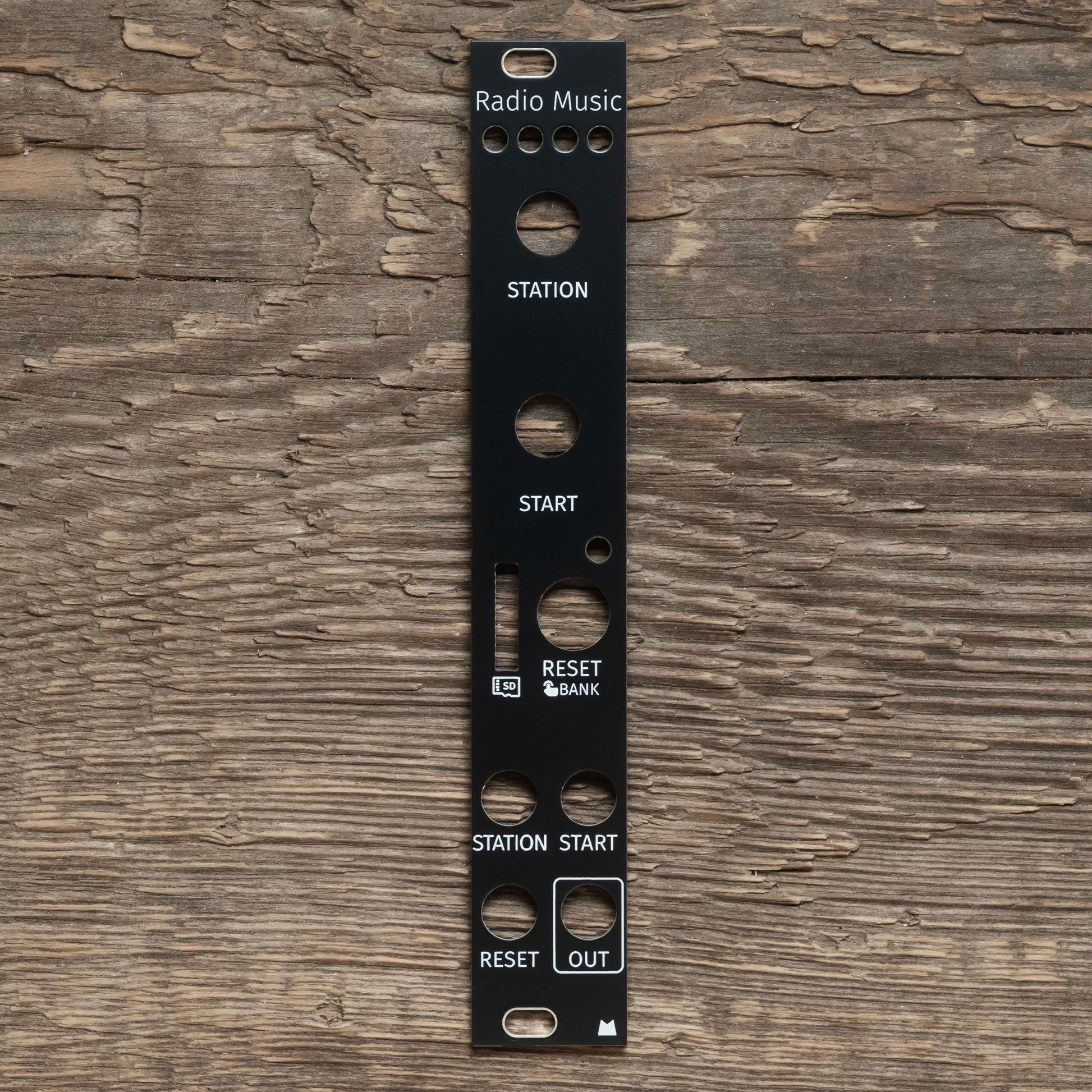 Black replacement panel for Music Thing Modular Radio Music eurorack module.