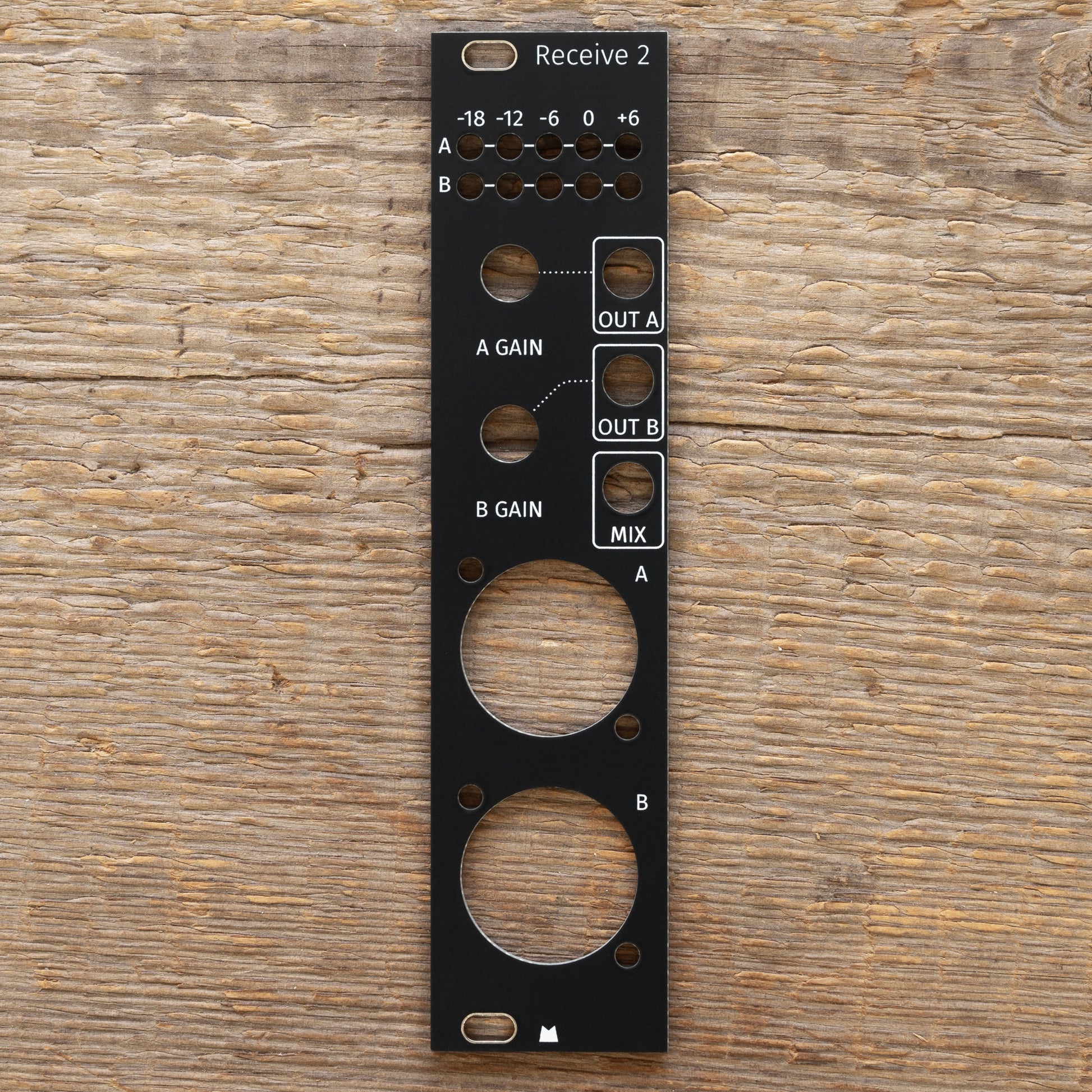 Black replacement panel for Joranalogue Receive 2 eurorack module.