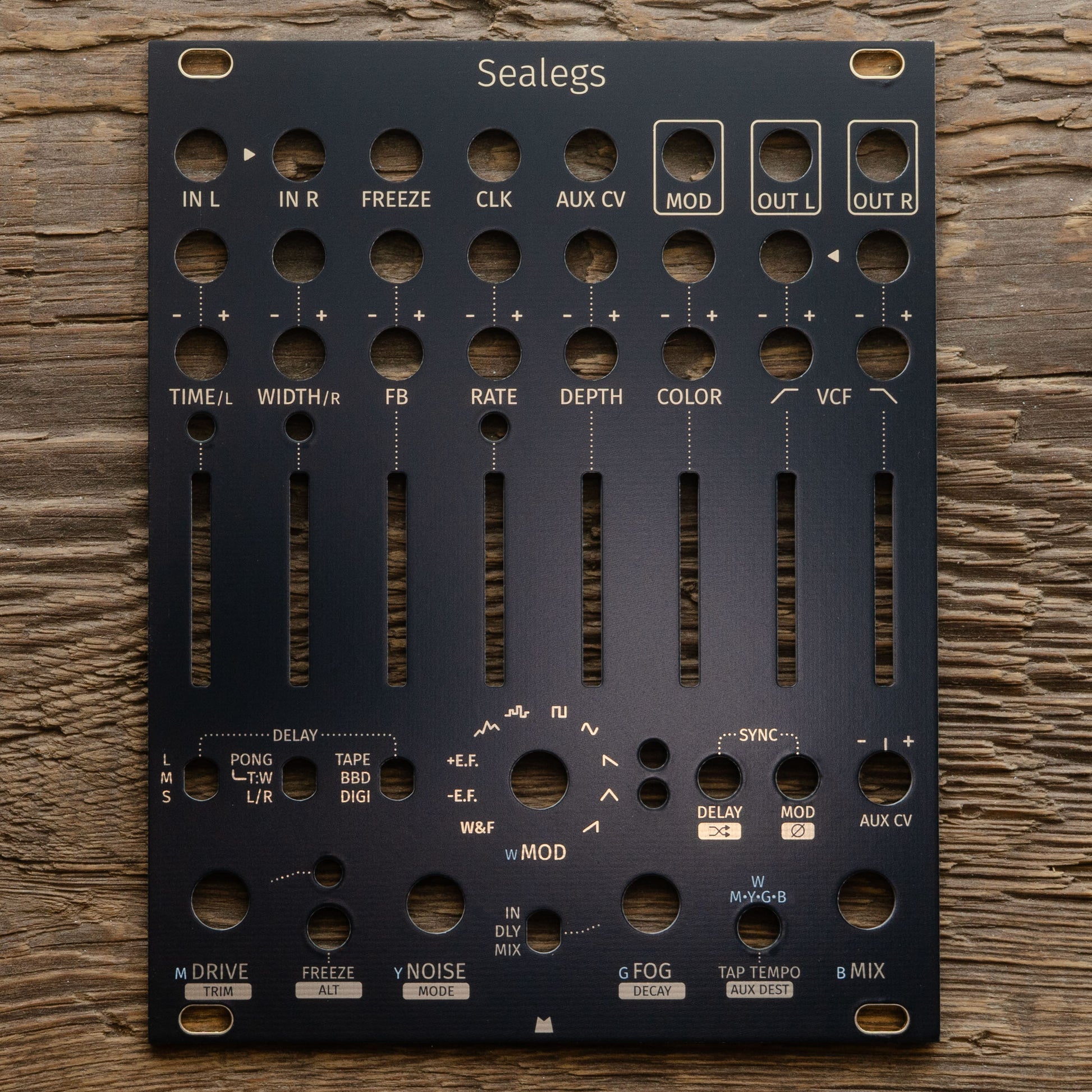 Black & Gold replacement panel for Intellijel Sealegs eurorack module.