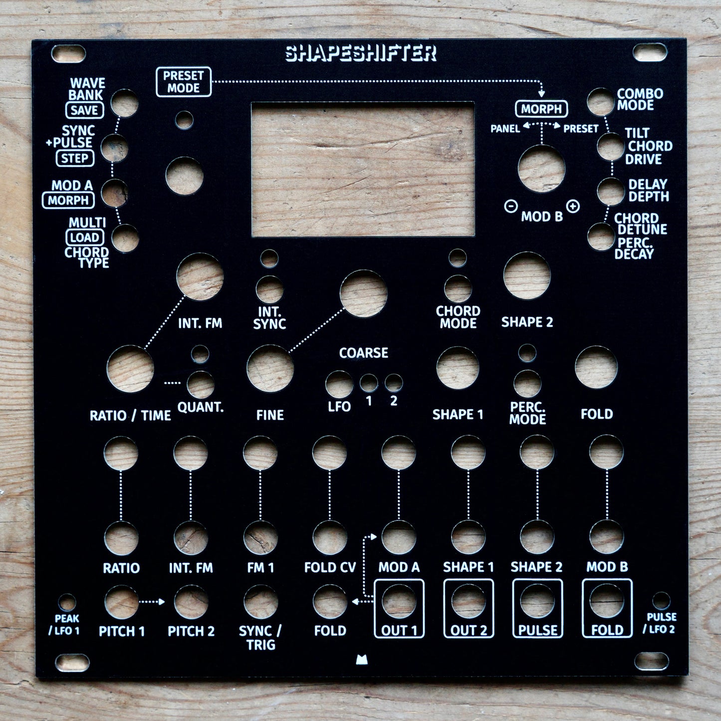 Black replacement panel for Intellijel Shapeshifter eurorack module.