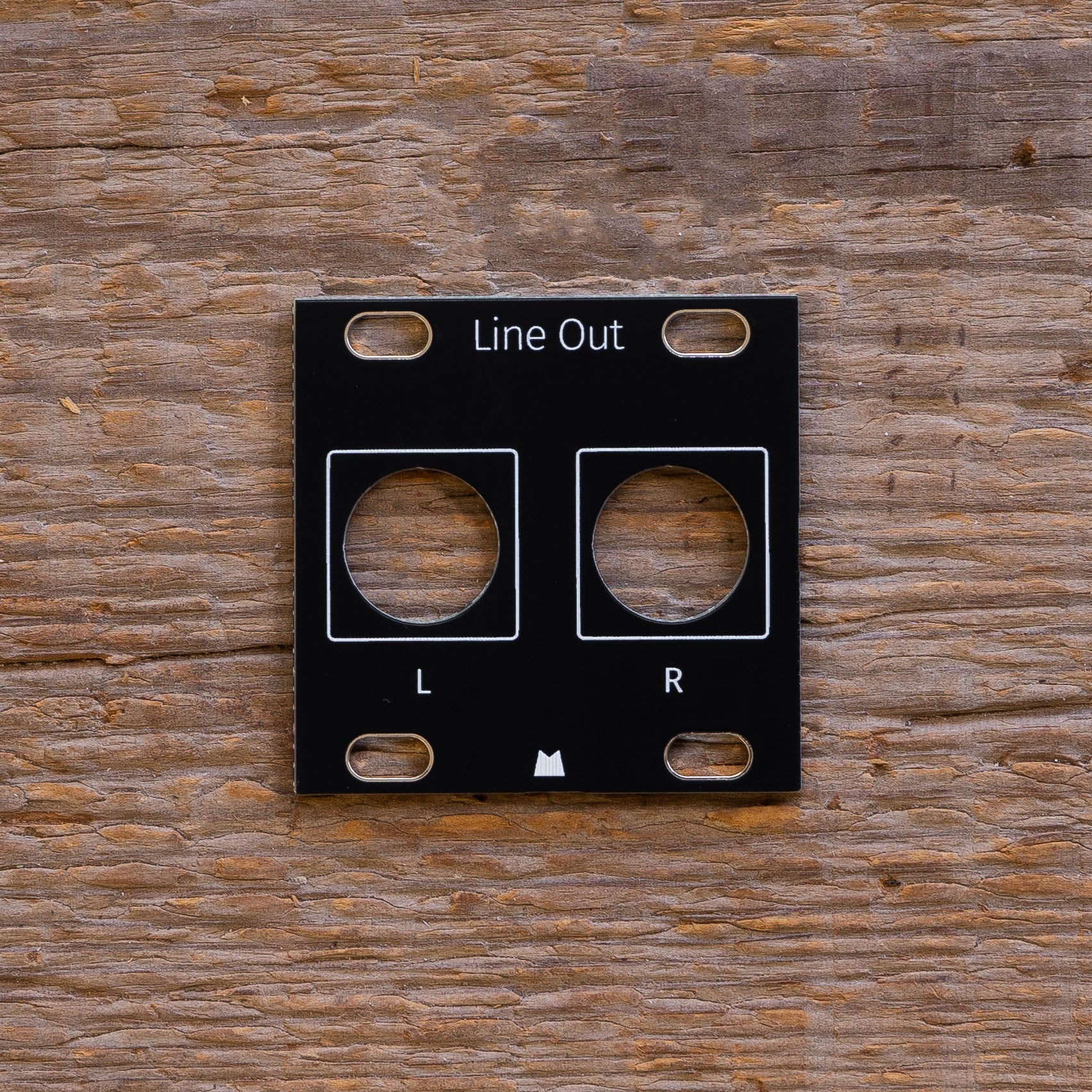 Black replacement panel for Intellijel Stereo Line Out Jacks 1U eurorack module.