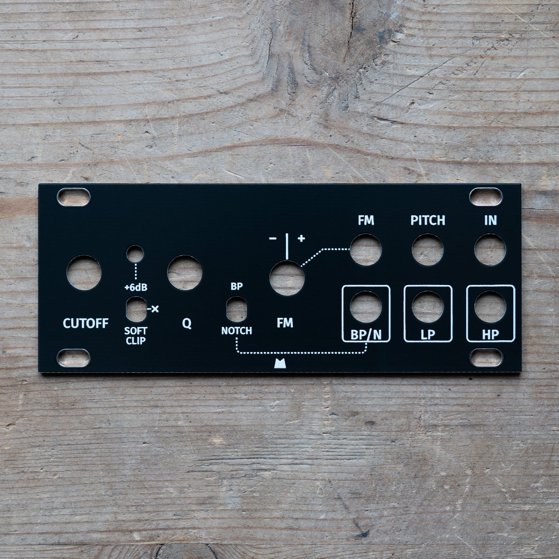 Black replacement panel for Intellijel SVF 1U eurorack module.