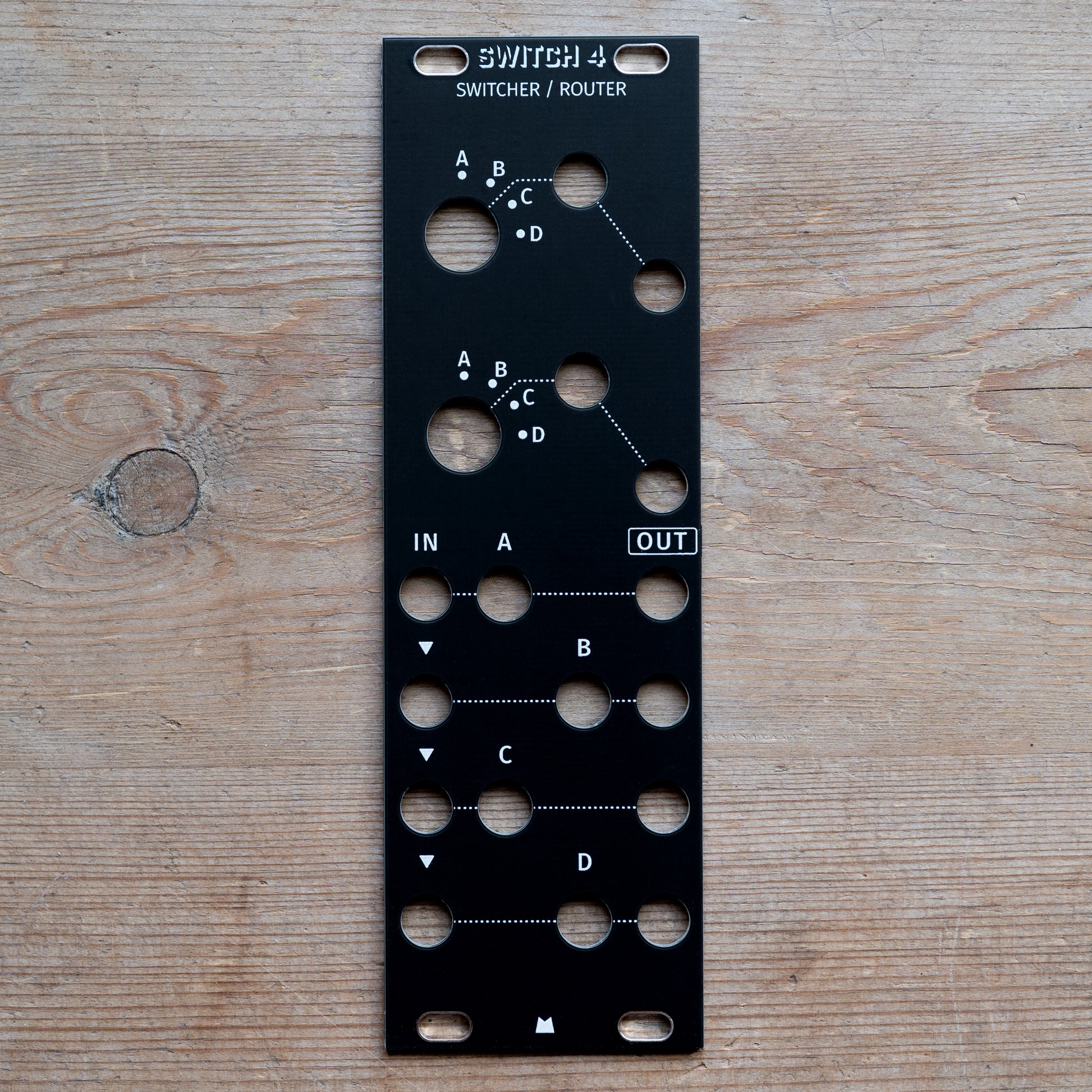Black replacement panel for Joranalogue Switch 4 eurorack module.