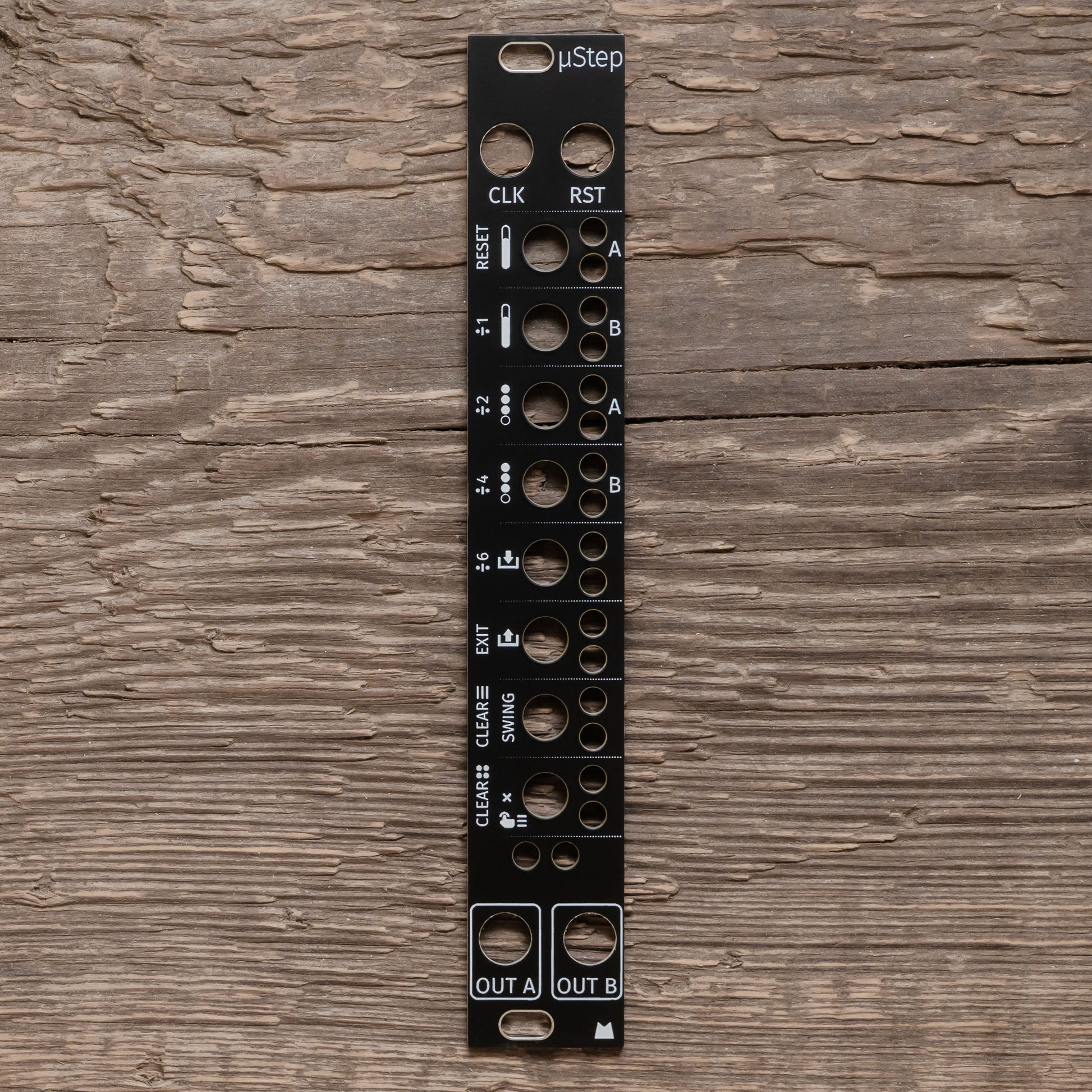 Black replacement panel for Intellijel µStep / uStep eurorack module.