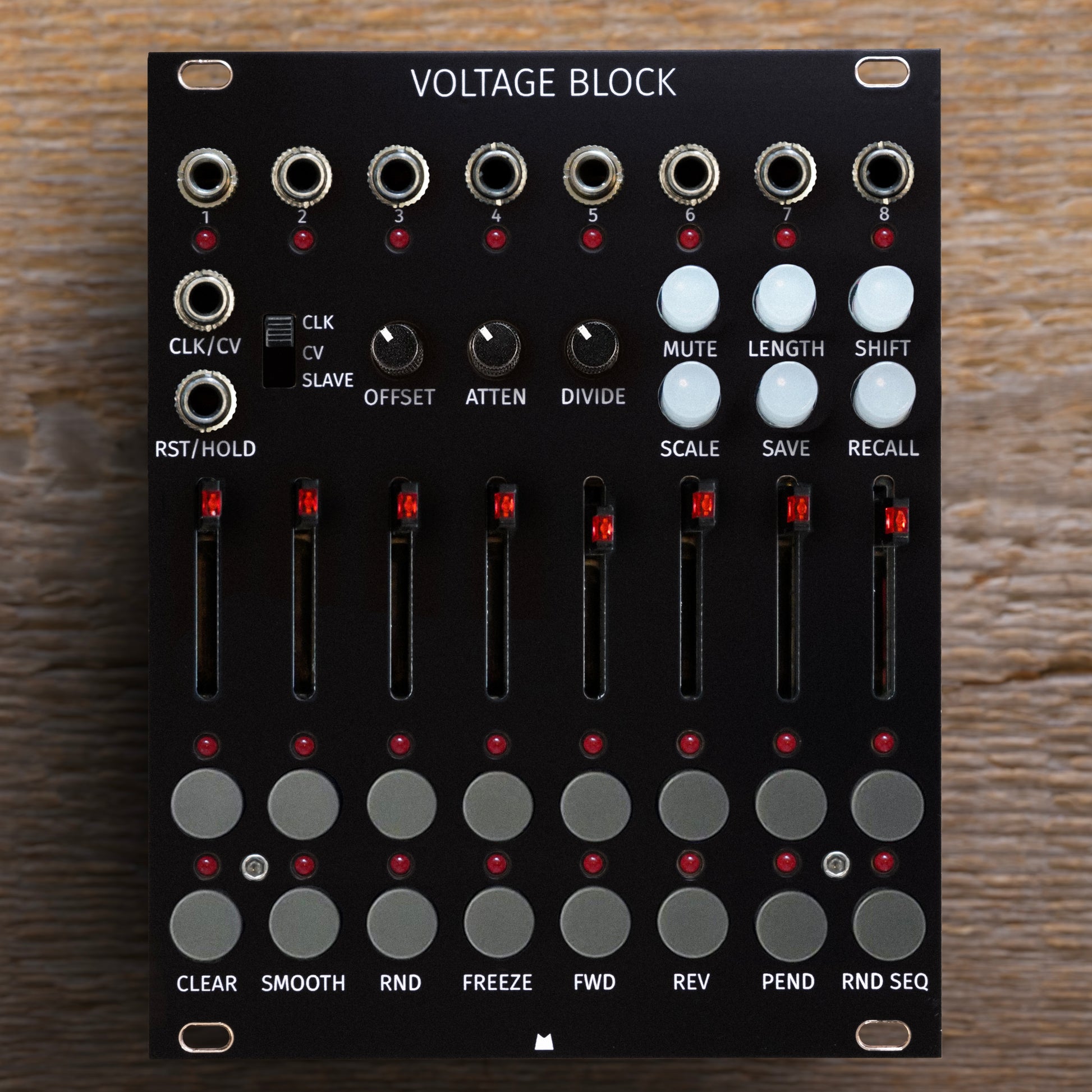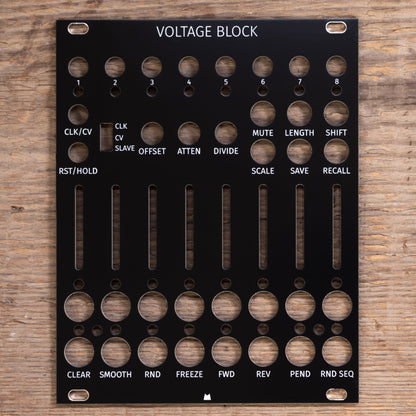 Black replacement panel for Malekko Heavy Industry Voltage Block eurorack module.